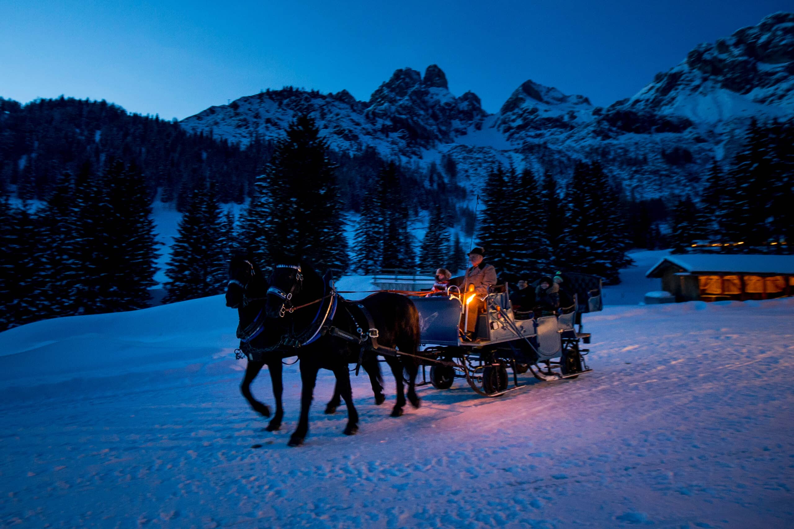 Romantisch zu zweit oder mit der Familie – eingehüllt in warme Decken durch die verschneite Winterlandschaft. Die Kutscher erzählen spannende Geschichten, beliebtes Ziel: die Hofalmen mit Einkehrmöglichkeit.